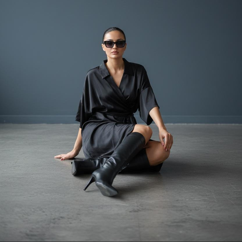 Elegantna haljina s preklopnim krojem koji lijepo oblikuje siluetu i naglašava struk uz vezanje sa strane. Diskretni V-izrez i midi dužina daju joj profinjen izgled, dok blagi prorez sprijeda dodaje dozu ženstvene dinamike. Idealan izbor za večernje prilike, poslovne evente ili stilizovane dnevne kombinacije.