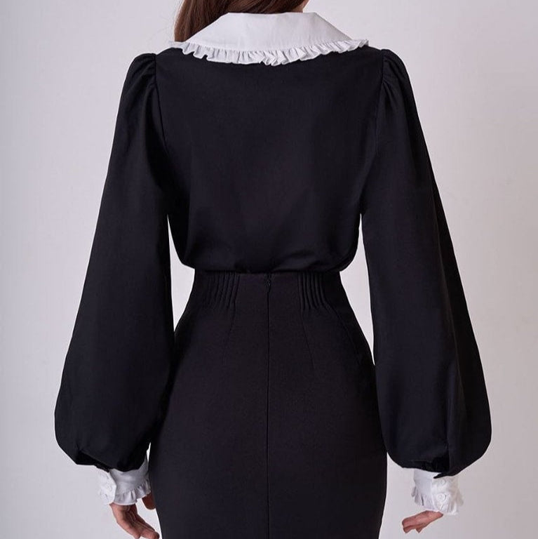 🔹 Dugi rukavi s bijelim manžetnama i volanima za dodatni šarm