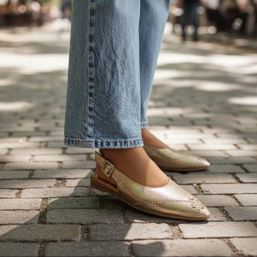 Lijepe i praktične sandale izrađene od kvalitetne prirodne kože, savršene za svakodnevno nošenje. Zatvoren prednji dio sa sitnim perforacijama pruža prozračnost i dodatnu udobnost, dok otvorena peta sa podesivim kaišićem omogućava sigurno i lako prilagođavanje stopalu.